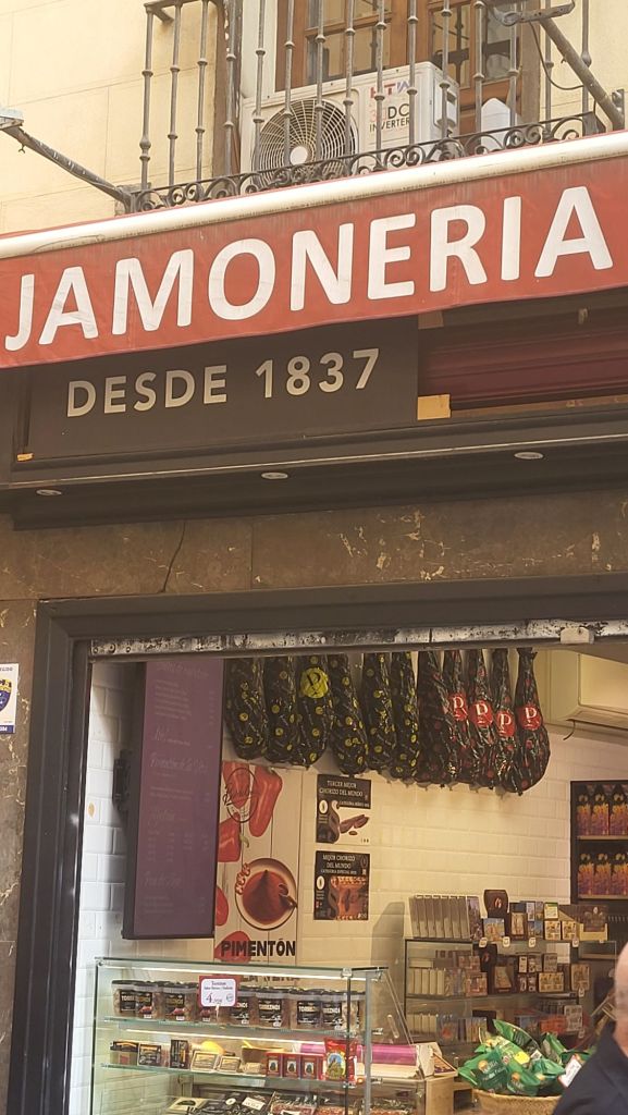 Notice this store in business since 1837!  It sells jamon (ham and prosciutto)